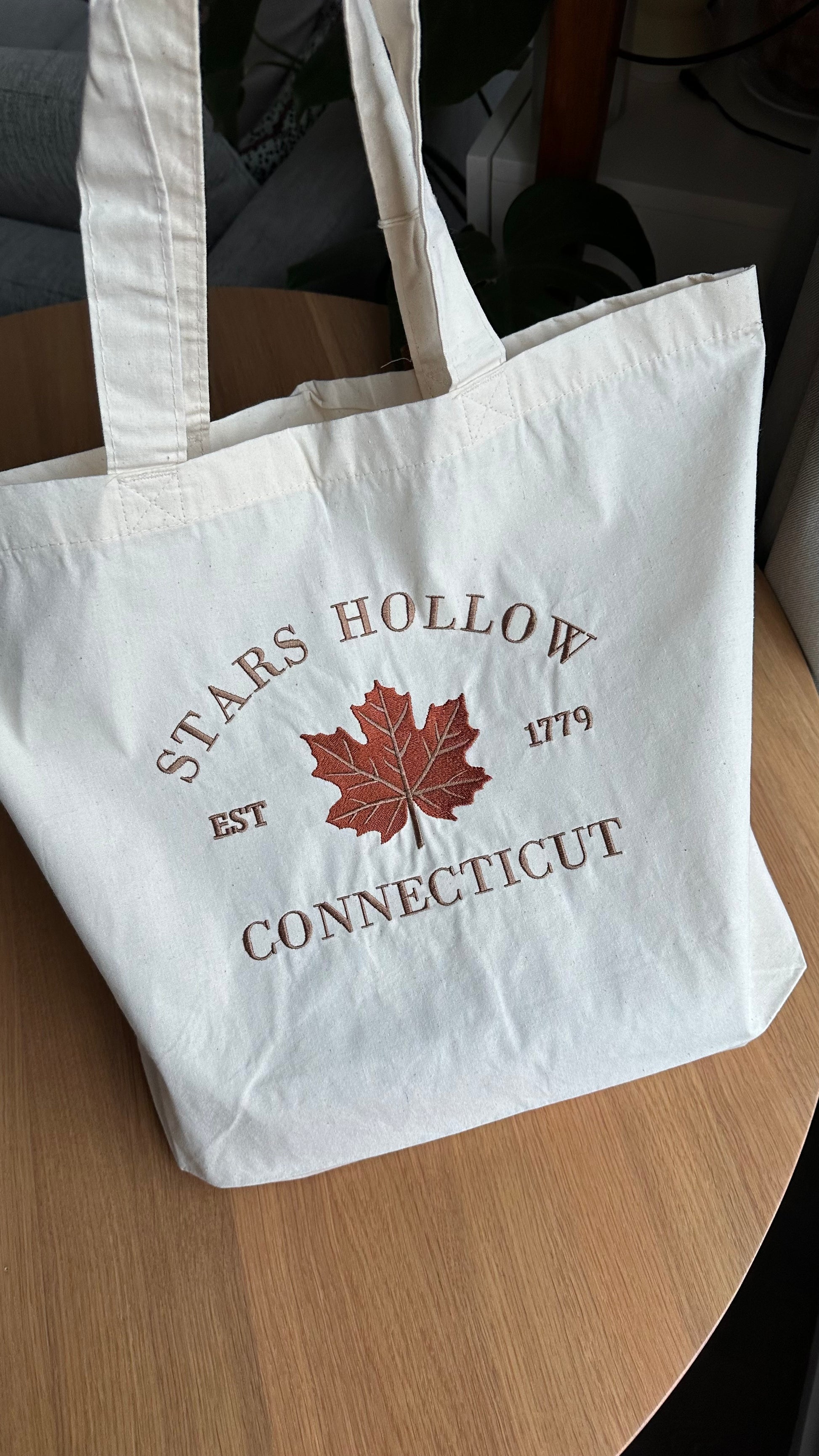 If you need a perfect cozy fall vibe tote bag, or you are going back to school, look no further. Especially if you are also fantasising about living in the perfect small town Stars Hollow just like many of us dream to do.