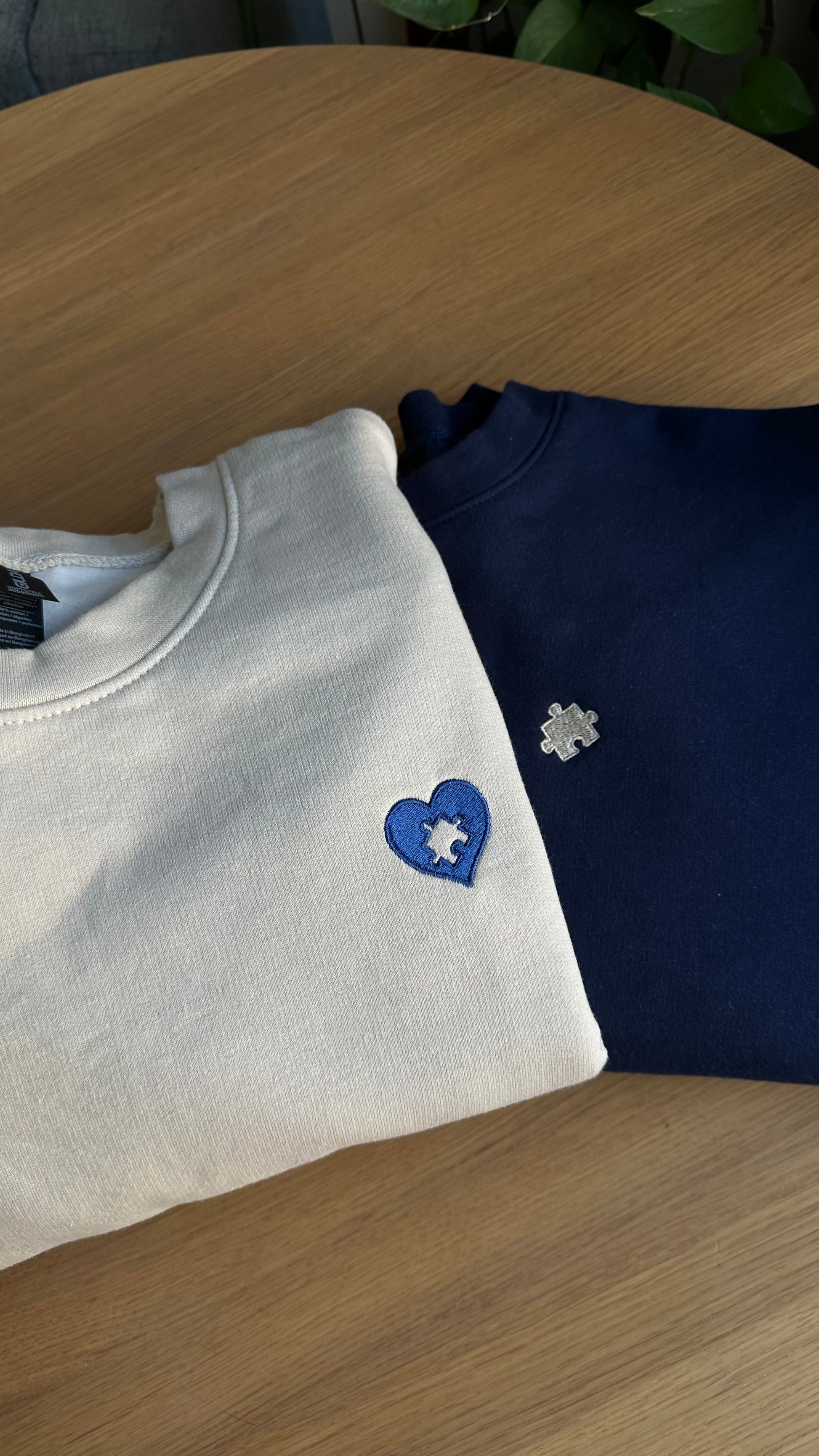 We will match the sweatshirt colour with the thread colour (for example, a navy sweatshirt with beige thread, and a beige sweatshirt with navy thread).
